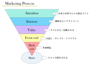 また、図の一番下のシェアという部分は、口コミや実際に使った人がSNSなどで紹介したり、特定の誰かにすすめるという意味。