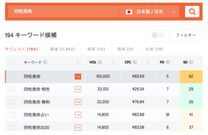例えば、検索窓に「四柱推命」と入れて検索すると、ずらっと検索結果が出てきますね。