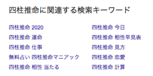 で、この検索結果を下までスクロールすると、「四柱推命に関連する検索キーワード」というものがまとまって表示されています。